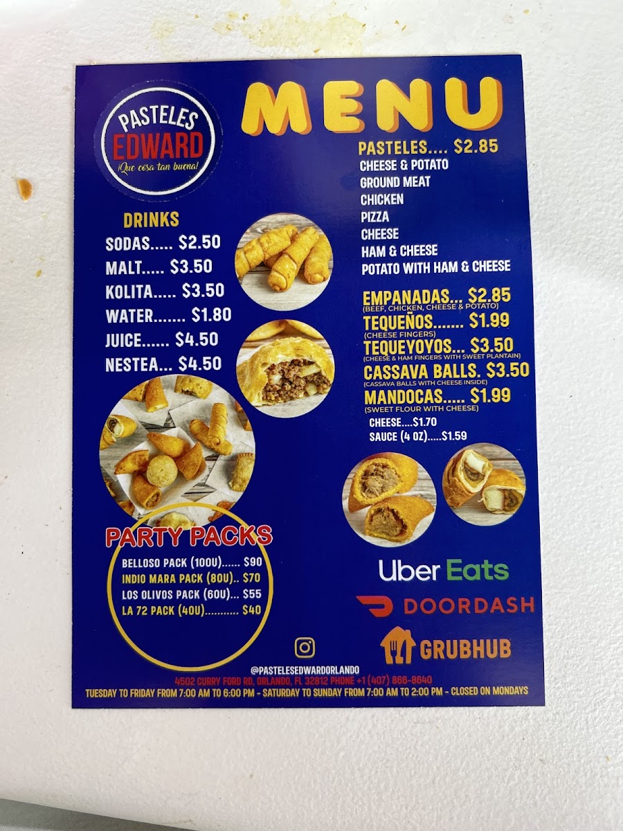 Welcome to Pasteles Edward Orlando, an enticing gem situated at 4502 Curry Ford Rd, Orlando, FL. Known for its vibrant offerings, this restaurant specializes in delectable Venezuelan pastries that have captured the hearts of locals and visitors alike.